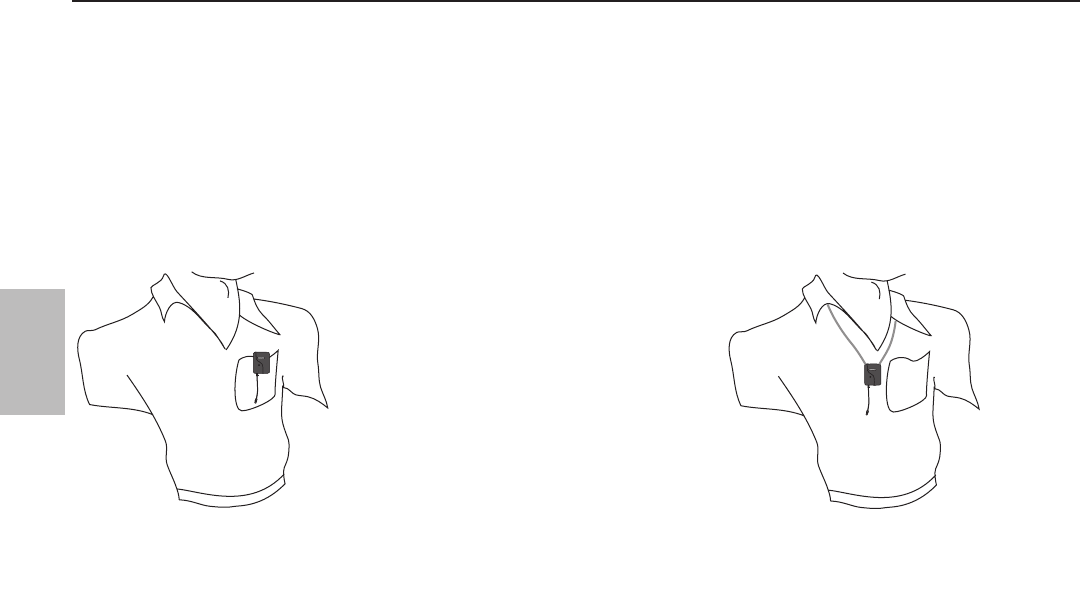 Hemdtasche oder Revers befestigt, oder mit Hilfe der