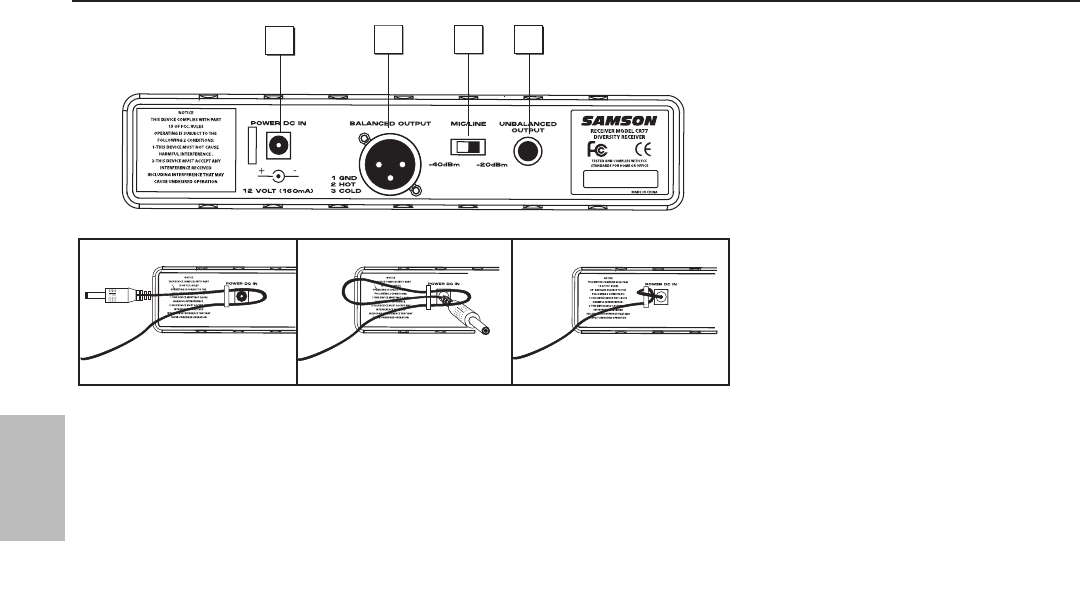 4: Salida balanceada* - Utilice este conector XLR balanceado electrónicamente y de baja impedancia (600 Ohm) cuando conecte el CR77